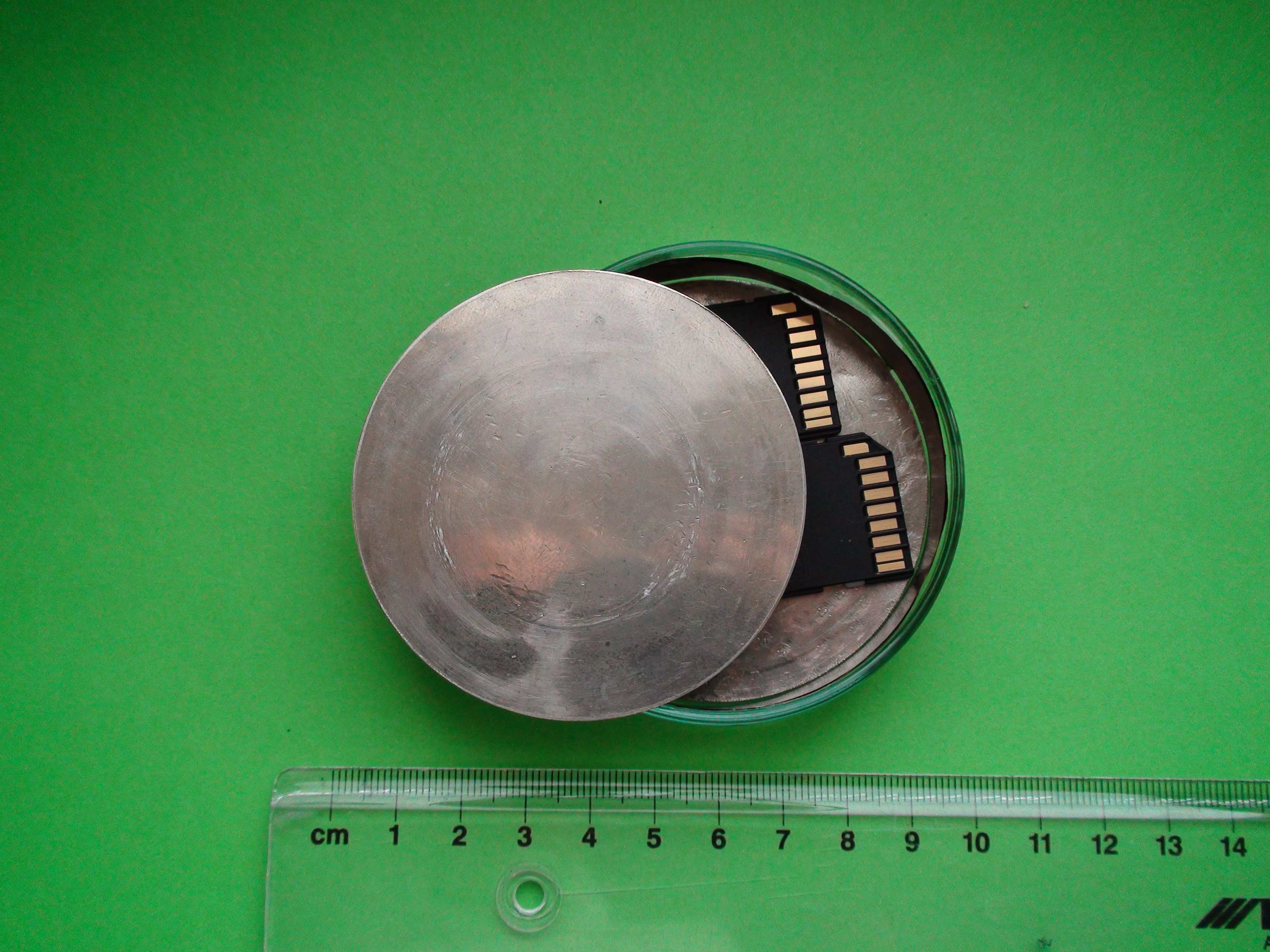 The second container hosts a sample of the Hans glacier placed in a glass vessel of 200 ml volume and sealed with epoxy resin. A sample of coal, reindeer antlers, and a local shellfish were also included. When analyzing the oxygen isotopic composition of the shellfish, one may infer the present-day water temperature at Hornsund. Identical sets of various photographs and movies (total of 12 GB) were also stored on two (the first likely to be spoiled by the discoverer in order to learn how to decode the second one) high-speed memory cards. They record the present-day life on Earth, with a focus on Spitsbergen. Additionally, two bird's-eye view photos portraying PPSH in winter and summer were inserted. To prove our ability in space exploration, a photograph of the Earth taken from a distance of 1 million miles by the NASA DSCOVR satellite, with the dark side of the Moon in the foreground, was also included. All three photographs were etched into porcelain, with the expectation that they will still be legible far into the future.